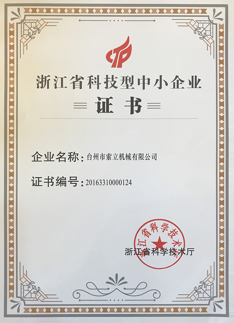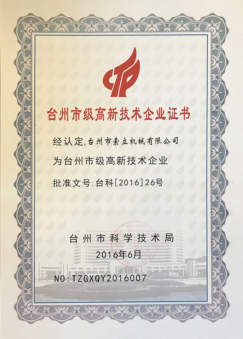 先后被浙江省科學(xué)技術(shù)廳授予“浙江科技型中小企業(yè)”、臺州市科技局授予“臺州市級高新技術(shù)企業(yè)”